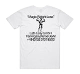 Eat Pussy GmbH design with front and back print on a white Gildan 100% Heavy Cotton T-Shirt.