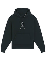 Supreme Love design on a black Stanley/Stella Slammer Hoodie. Fair Wear. 85% organic cotton, 15% recycled polyester.