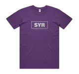 Sonic Youth 'SYR' design with silver metallic ink print on a purple Gildan Heavy T-shirt. 100% cotton.